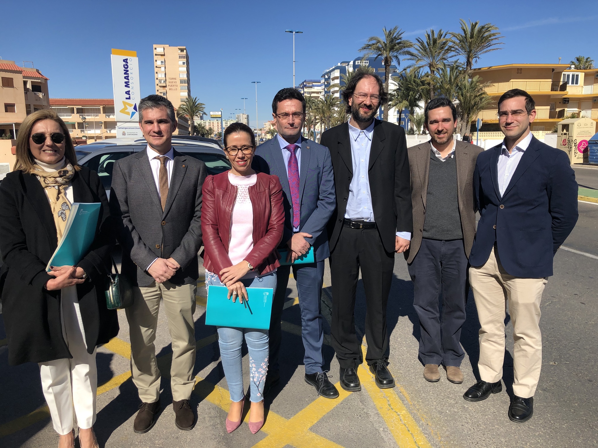 Los firmantes del convenio en La Manga del Mar Menor