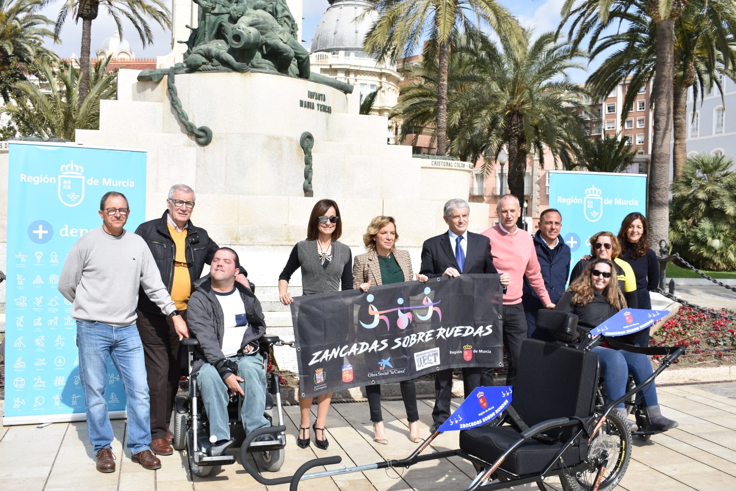 La consejera de Educación, Juventud y Deportes, Adela Martínez-Cachá, destacó el apoyo del Gobierno regional en la promoción de “la accesibilidad de todas las personas a actividades de ocio y tiempo libre” y también la “importante labor” que realiza esta asociación en la promoción del deporte integrado, durante un acto celebrado en Cartagena, junto a su presidenta, Teresa Piedad Rodríguez, y dos equipos de cuatro personas cada uno que llevan en dos sillas a Julio Ferreira (deportista con parálisis cerebral) y María del Mar Zaplana (deportista con discapacidad física).