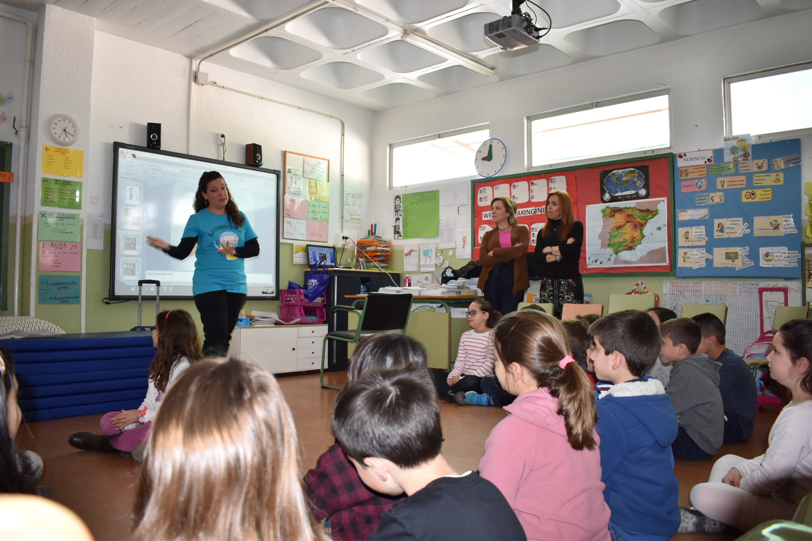 La consejera de Educación, Juventud y Deportes, Adela Martínez-Cachá, asiste a un taller de higiene postural en el colegio Carolina Codorniú Bosch de Murcia.