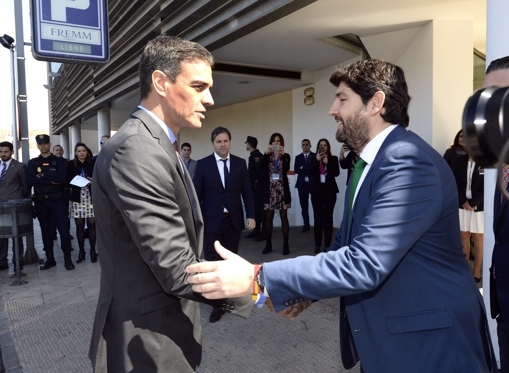 El presidente de la Comunidad, Fernando López Miras, junto al presidente del Gobierno de España, Pedro Sánchez, visita el Centro de Formación de la Federación Regional de Empresarios del Metal (Fremm).