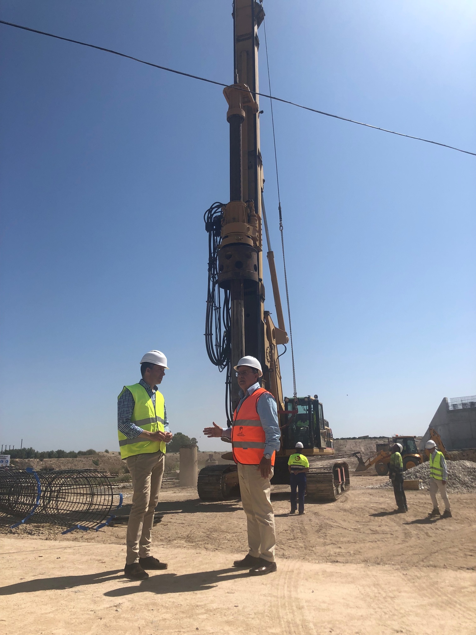 El consejero Patricio Valverde y el alcalde Fulgencio Gil, durante su visita a las obras del nuevo puente, que tendrá una longitud de 110 metros y una anchura de 10, con una calzada de dos carriles, cada uno de ellos de 3,2 metros, a lo que se suman arcenes de 1,3 metros.