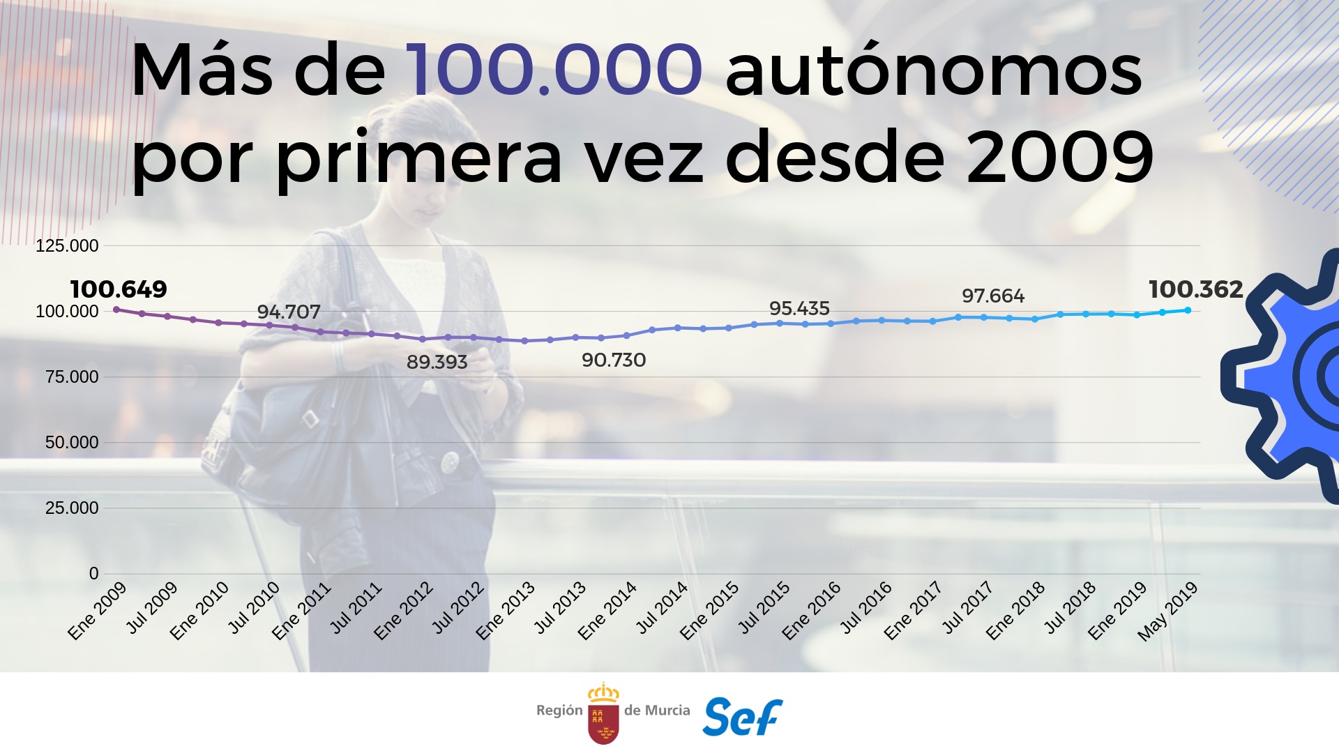 Gráfico que muestra la evolución del número de afiliados al régimen de autónomos de la Seguridad Social en los últimos diez años
