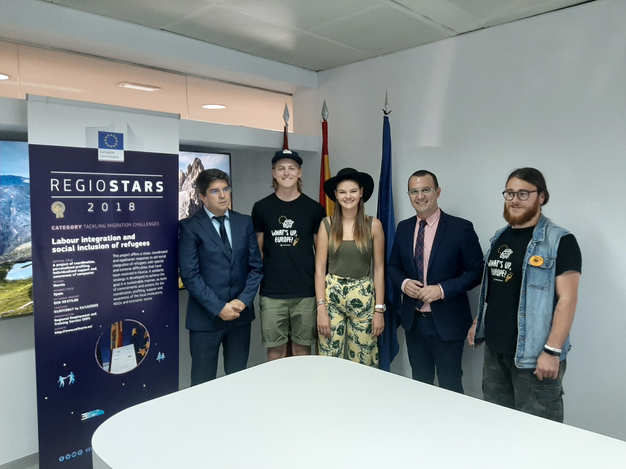 El director general del SEF, Aurelio Morales, y el director general de Servicios Sociales y Relaciones con el Tercer Sector, José López Mellado, recibieron a una comitiva de jóvenes europeos para detallarles el funcionamiento del protocolo para la inserción laboral y la inclusión social de refugiados.