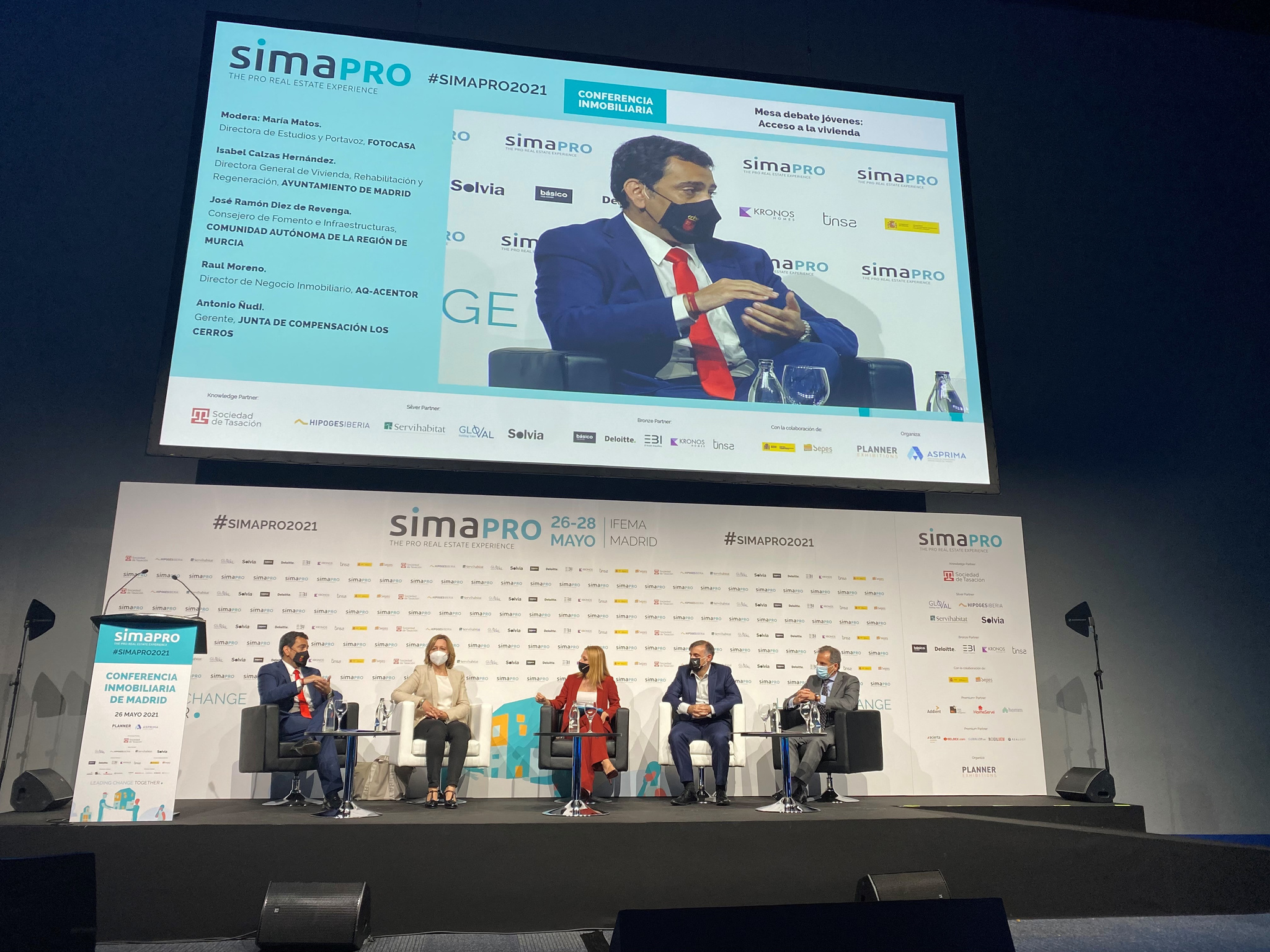 El consejero de Fomento e Infraestructuras, José Ramón Díez de Revenga, durante la 'Mesa de debate jóvenes: acceso a la vivienda´ de la Conferencia Inmobiliaria SIMAPRO 2021, organizada por la Asociación de Promotores Inmobiliarios de Madrid (ASPRIMA) y el Salón Inmobiliario de Madrid (SIMA).