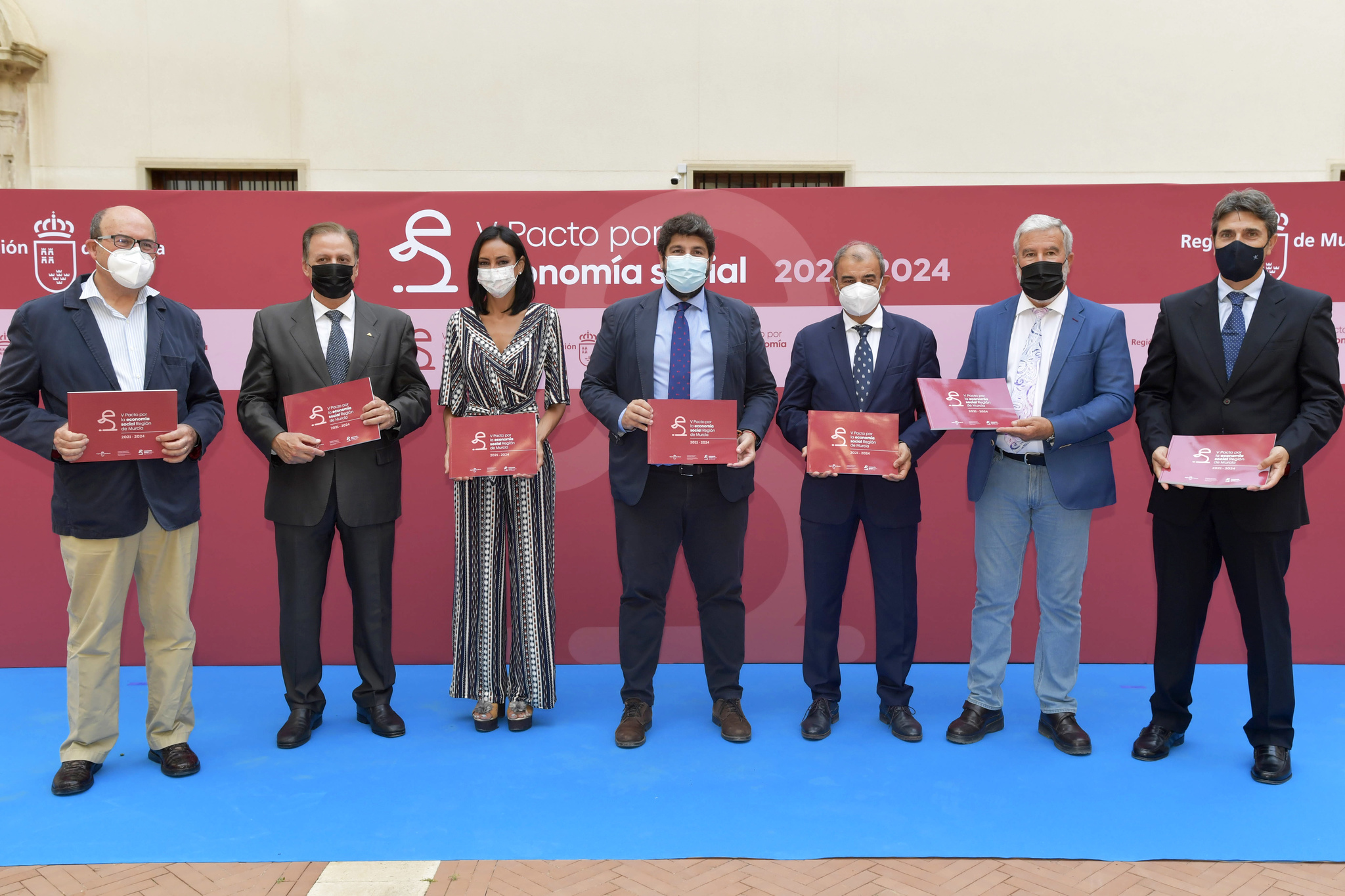 El presidente López Miras preside el Pacto para la Economía Social suscrito por el Gobierno regional junto a las organizaciones Ucomur, Ucoerm, Amusal, Fecoam, Fecamur y Adeirmur (1)