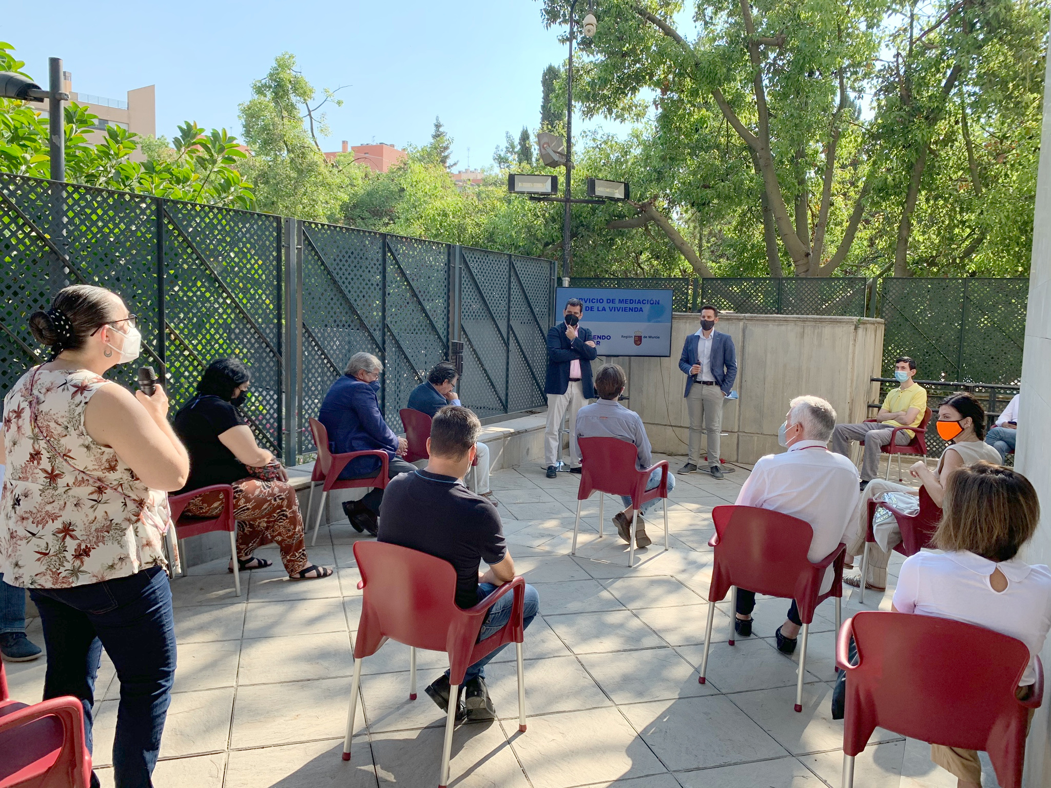 El consejero de Fomento e Infraestructuras, José Ramón Díez de Revenga, y el director de Vivienda, José Francisco Lajara, durante la reunión con las entidades colaboradoras del Servicio de Mediación de la Vivienda de la Región de Murcia (1)