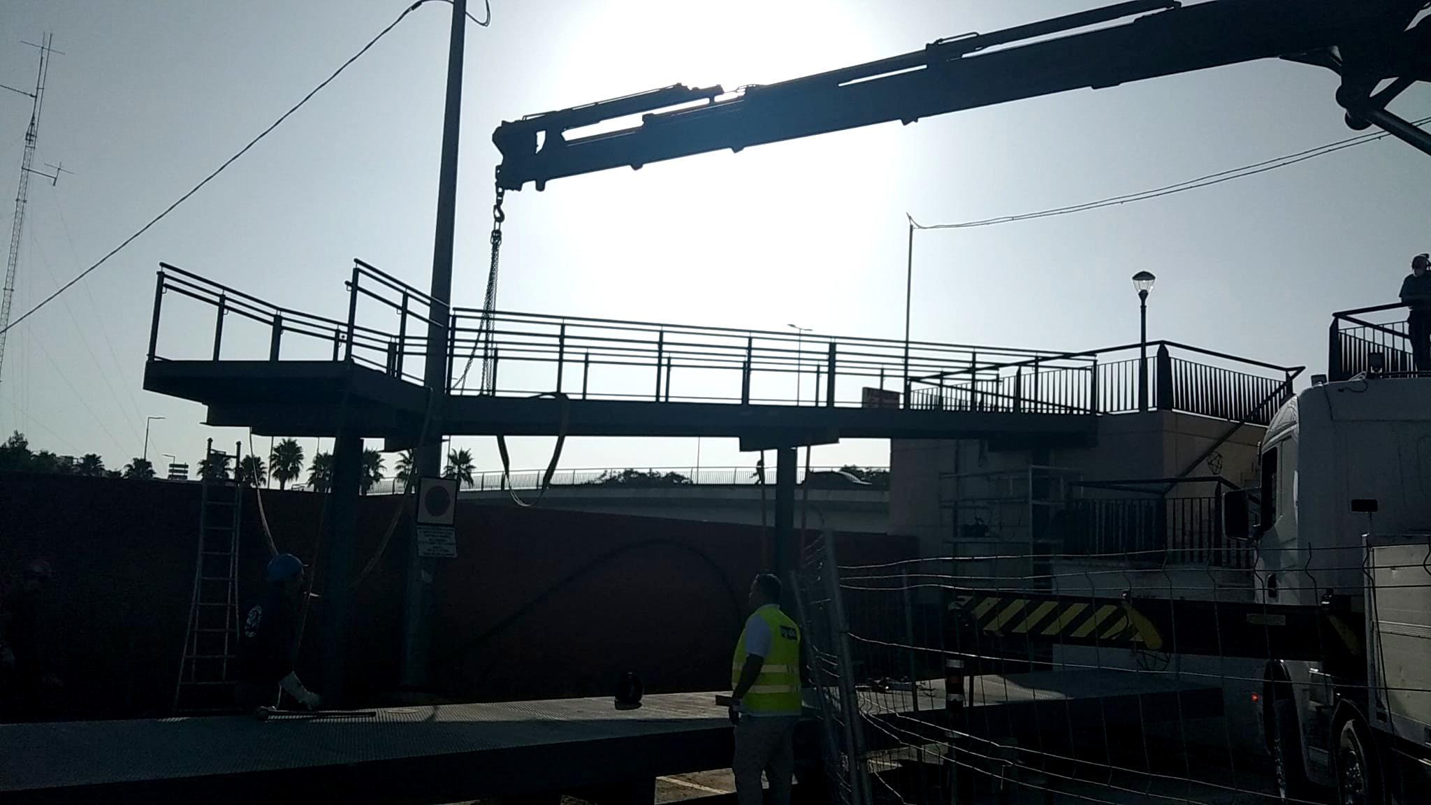 Imágenes de la instalación de la pasarela peatonal del barrio lorquino de Santa Clara (2)