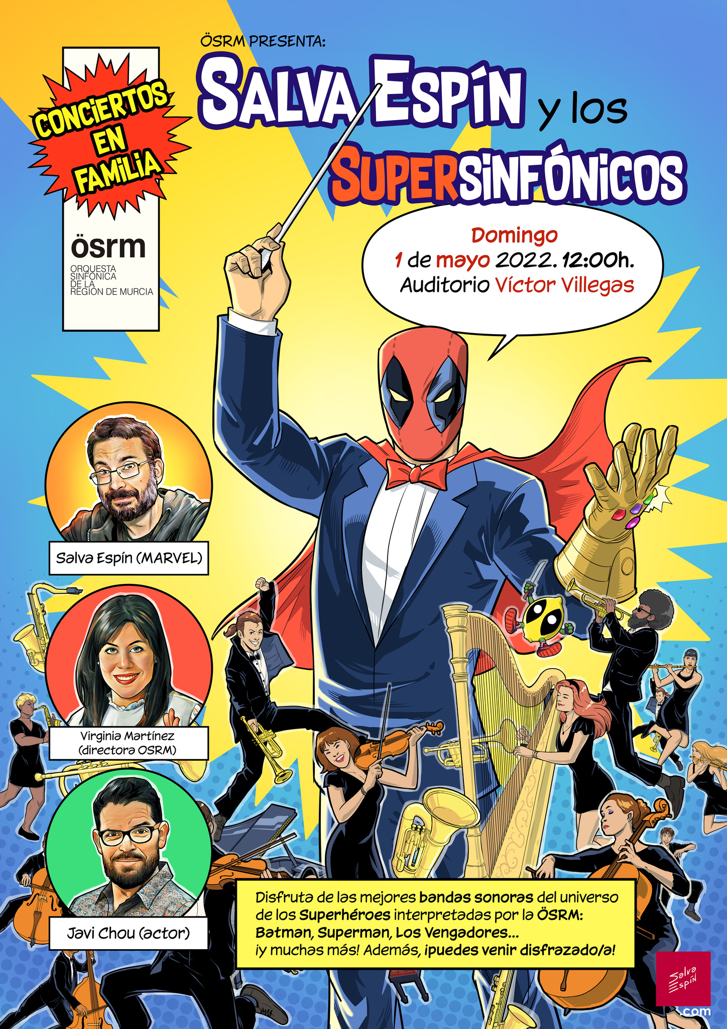 Cartel del espectáculo ‘Salva Espín y los supersinfónicos’ que se podrá ver el próximo domingo en el Auditorio regional Víctor Villegas, dentro del ciclo ‘Conciertos en Familia’.