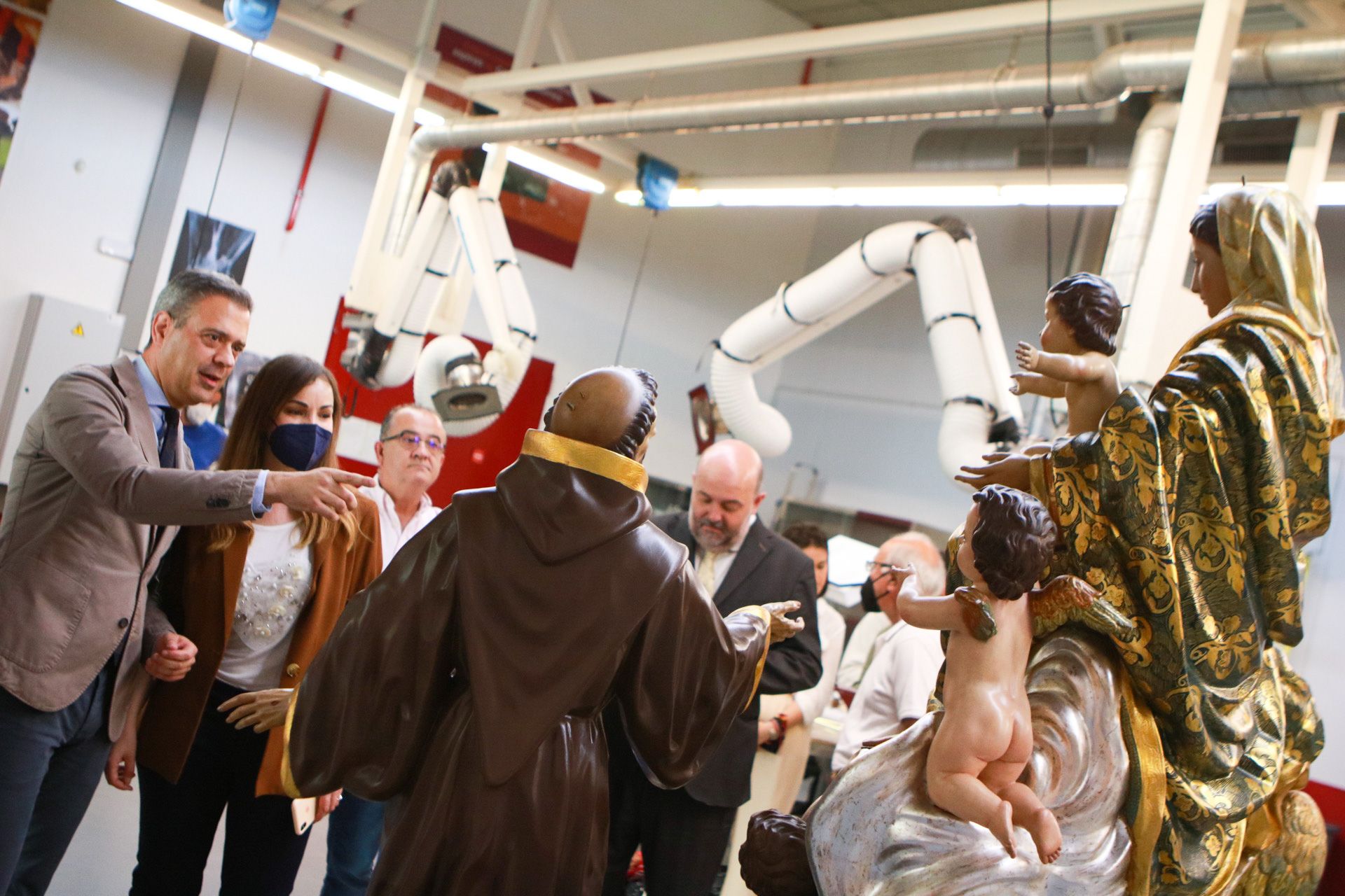 El consejero de Presidencia, Turismo, Cultura y Deportes, Marcos Ortuño, entregó hoy a su parroquia la imagen de Nuestra Señora de los Ángeles y San Francisco recibiendo al Niño Jesús, patrona de la pedanía de El Esparragal (Murcia). Esta obra del escultor murciano Juan González Moreno ha sido sometida a un proceso de análisis y diagnóstico, limpieza y reintegración cromática en el Centro de Restauración de la Comunidad.