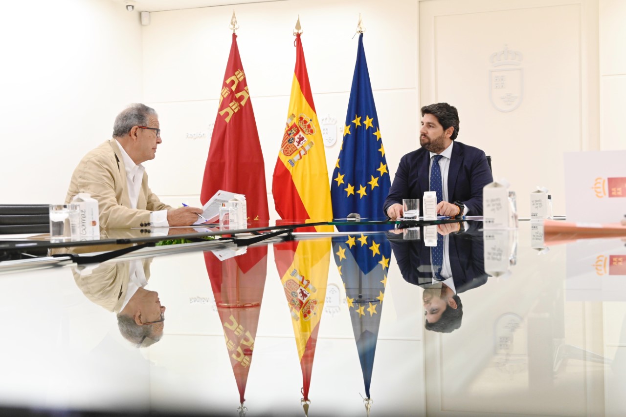 El jefe del Ejecutivo regional, Fernando López Miras, se reúne con el presidente de la Federación de Asociaciones de Familias Numerosas de la Región de Murcia (FANUMUR), Gonzalo Sánchez /1