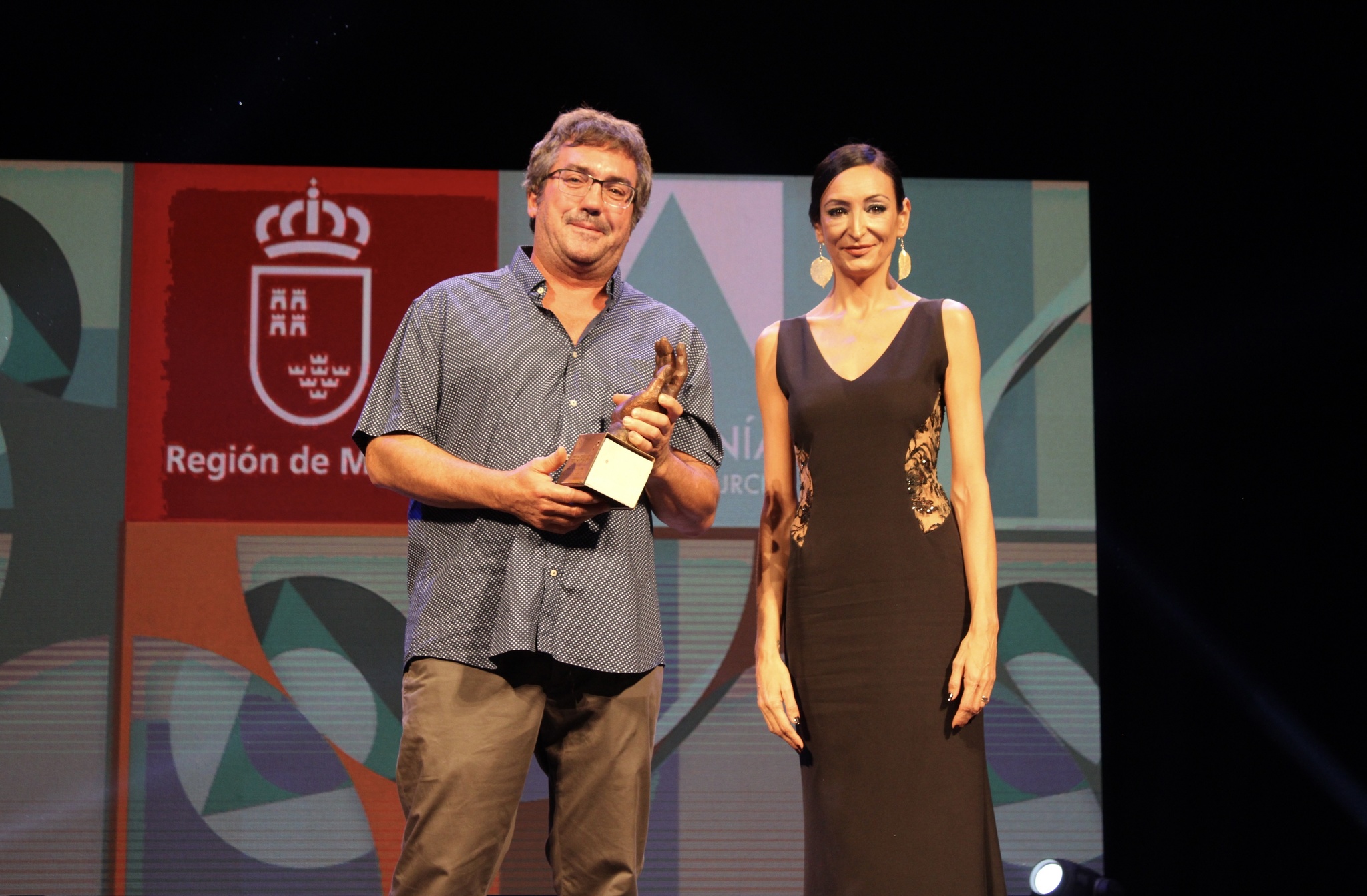 La consejera de Empresa, Empleo, Universidades y Portavocía, Valle Miguélez, entrega el Premio Regional de Artesanía al artesano creativo del vidrio y metal Ismael Cerezo ‘Flyppy’, en la Gala celebrada esta tarde en Lorca.