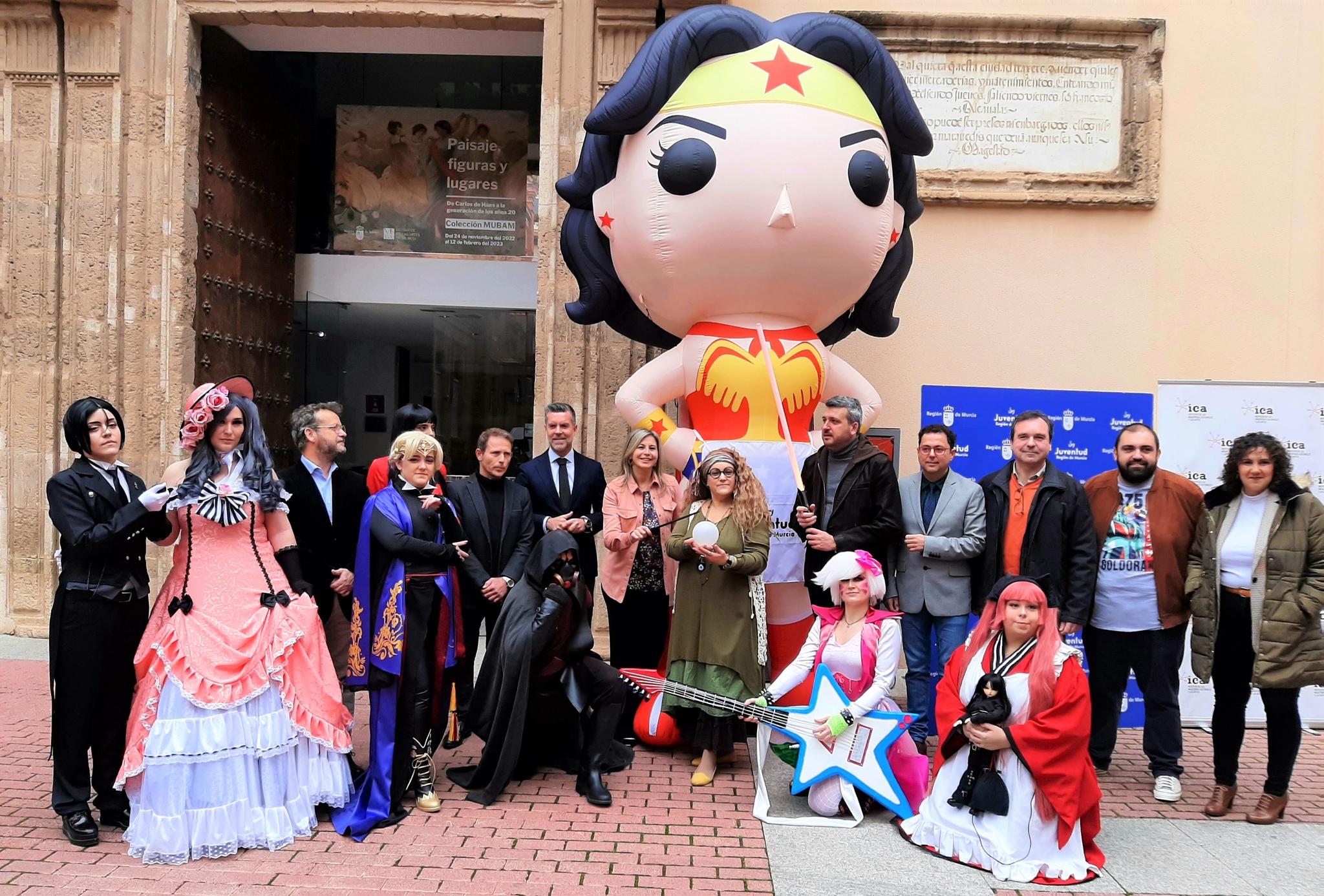 El director general del Instituto de las Industrias Culturales y la Artes (ICA), Manuel Cebrián, y el director general de Juventud, José Manuel López, posan junto a los 'cosplayers', personajes de la cultura manga, y autoridades en la presentación de 'Winter Freak 2023´