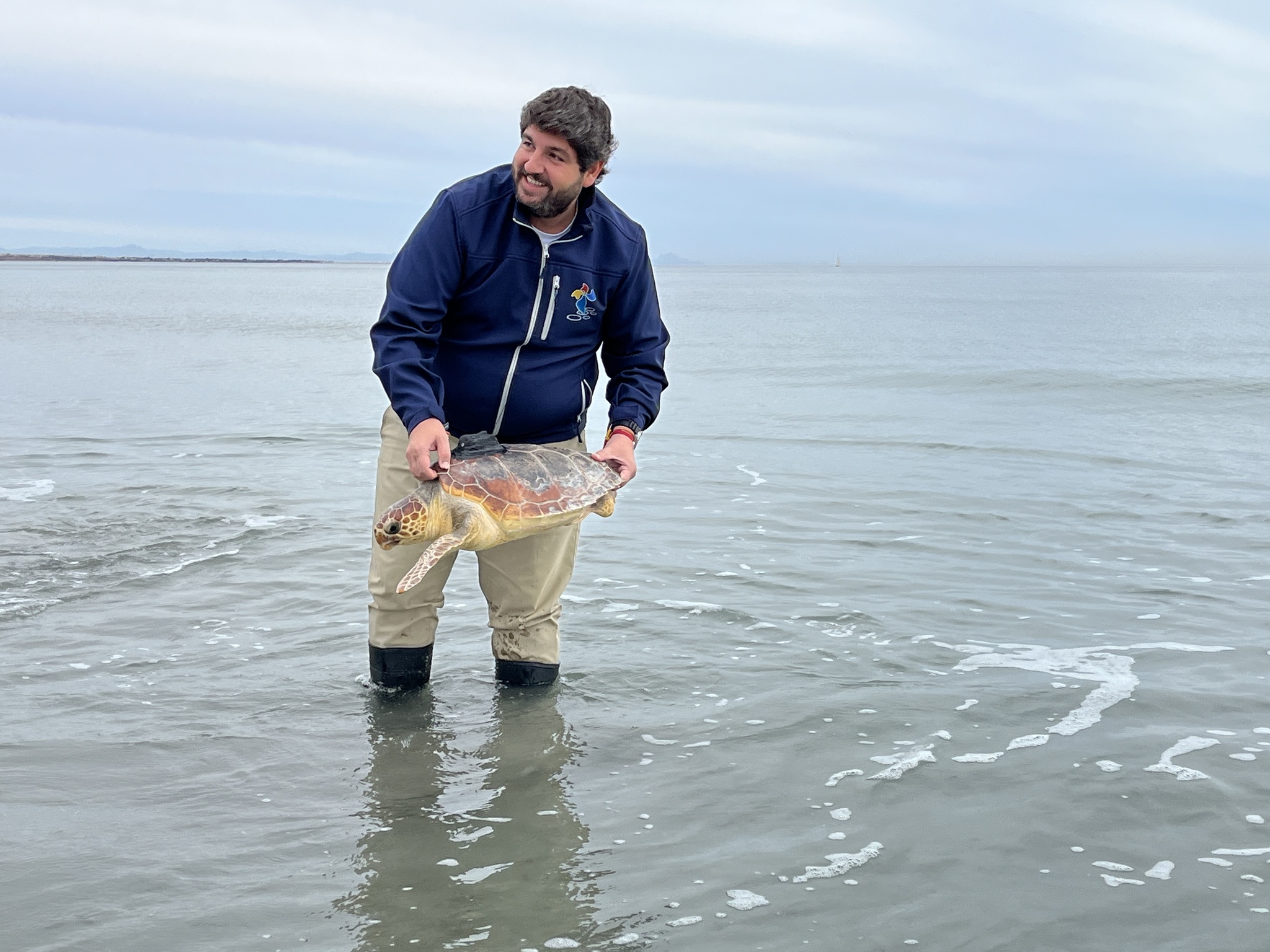 El presidente de la Comunidad, Fernando López Miras, libera dos ejemplares de tortuga boba en San Pedro del Pinatar.