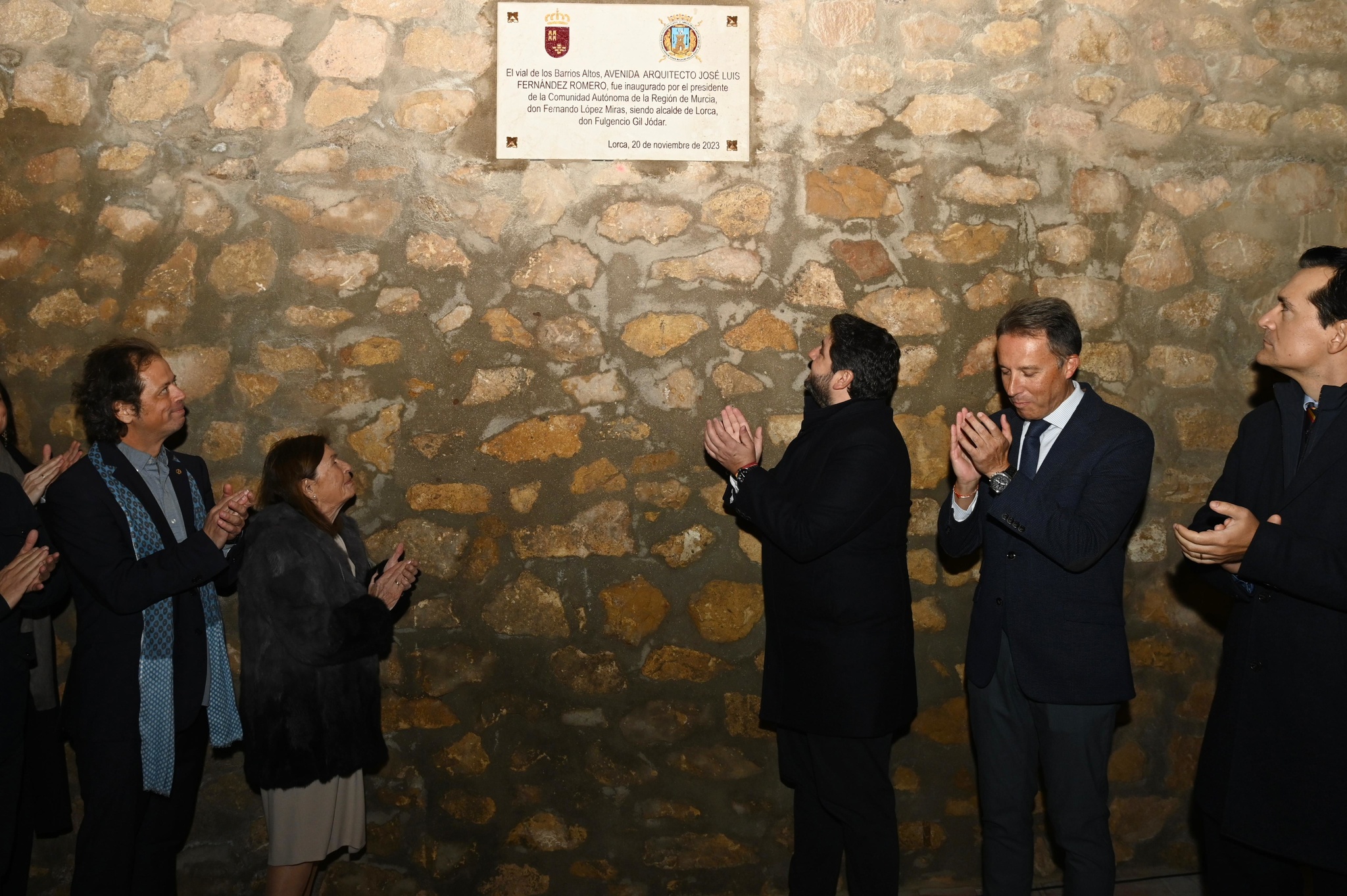 El nuevo vial de circunvalación recibe el nombre del arquitecto José Luis Fernández Romero, “un hombre clave en la configuración urbana de Lorca, con una trayectoria intachable, que amaba a su pueblo y a sus gentes, que siempre estuvo al lado de esta tierra y que siempre trabajó por ella”, en palabras del presidente.