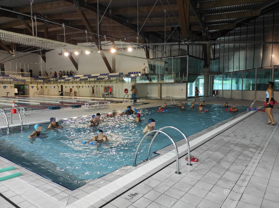 Los participantes del proyecto de Cartagena realizando actividades de Aquagym en el Palacio de Deportes de su municipio, el 7 de septiembre de 2023, como parte de la actividad de la Caja de Experiencias