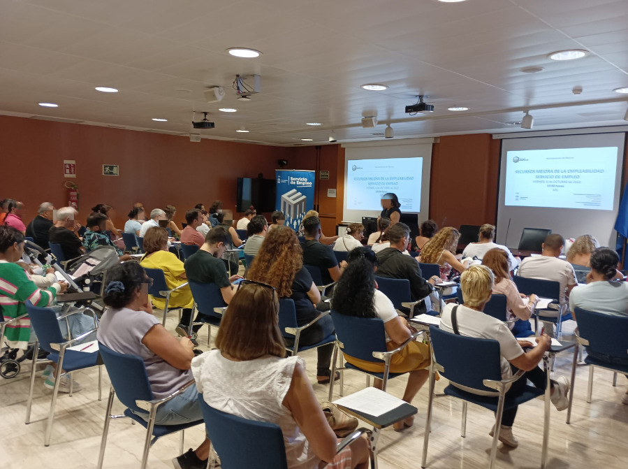 Los participantes del proyecto de Murcia, visitando la feria de empleo del SEF, celebrada en el Auditorio y Centro de Congresos Victor Villegas de Murcia, el día 27 de septiembre de 2023, como parte de la actividad de la Caja de Experiencias