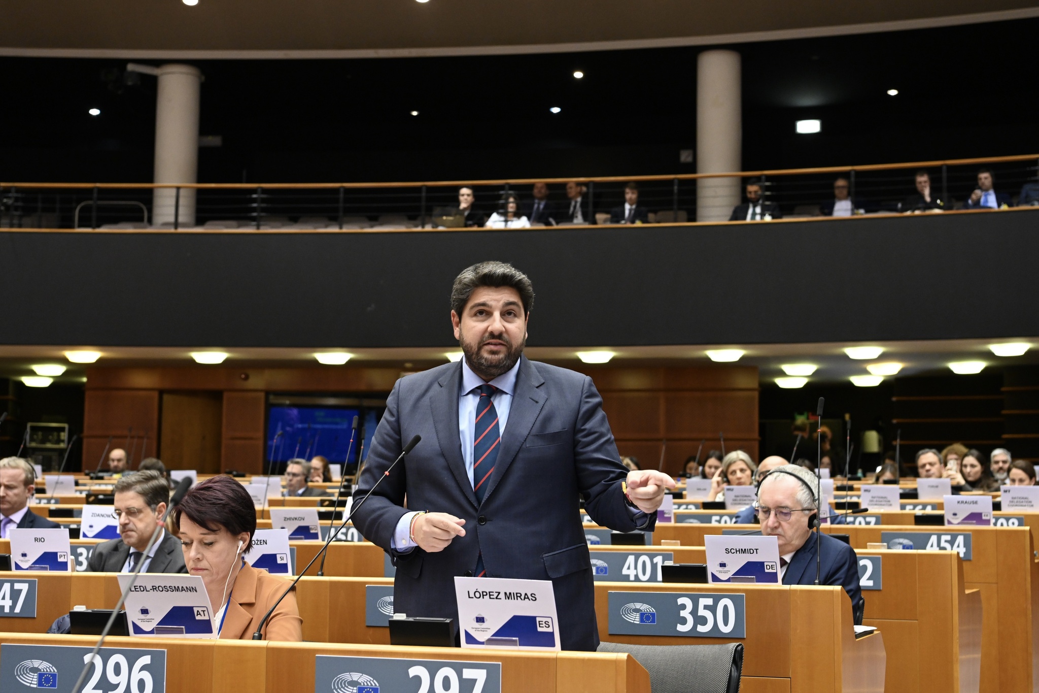 El presidente del Gobierno de la Región de Murcia, Fernando López Miras, durante su intervención en la sesión plenaria del Comité de las Regiones
