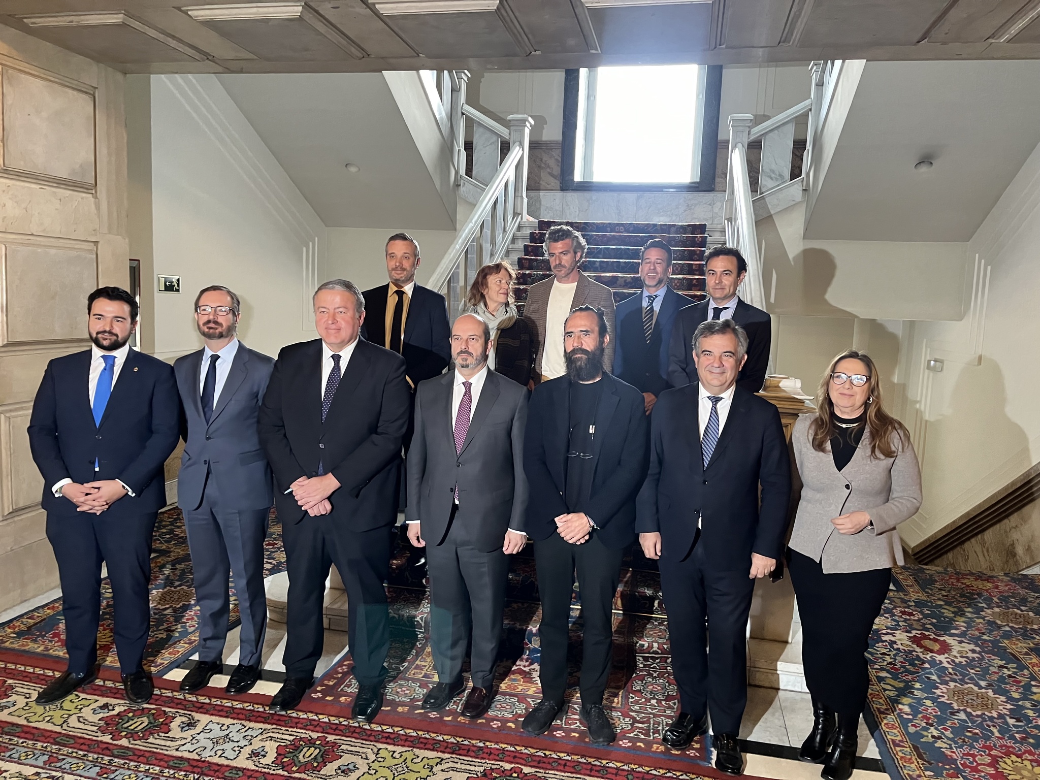 El consejero de Medio Ambiente, Universidades, Investigación y Mar Menor, Juan María Vázquez, con el presidente del Senado, Pedro Rollán y parte de la delegación de la Región de Murcia, en el Senado