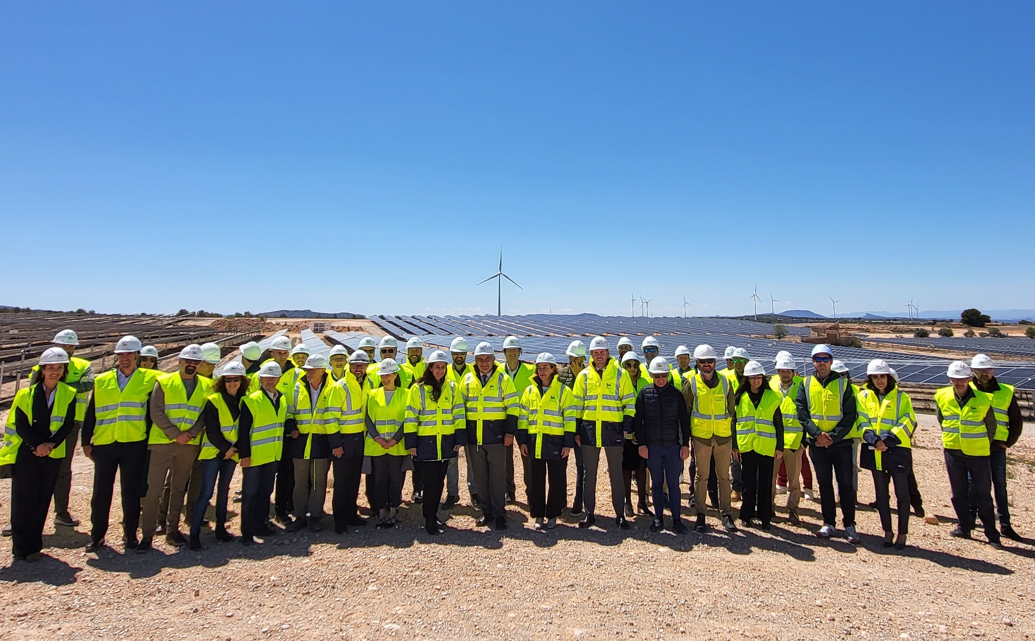 El consejero de Medio Ambiente, Universidades, Investigación y Mar Menor, Juan María Vázquez, durante su visita a la planta solar fotovoltaica Cerrillares, de la empresa ENI Plenitude, con motivo de su puesta en funcionamiento
