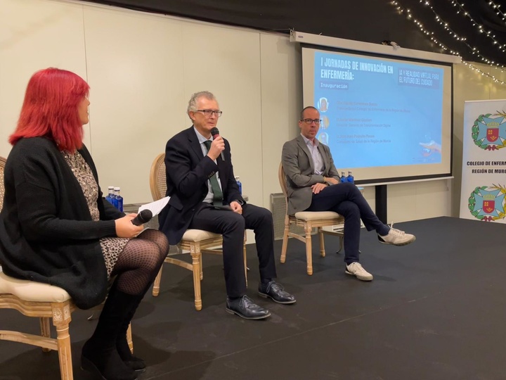 El consejero de Salud inauguró hoy la I Jornada de ‘Enfermería en la era de la IA y la realidad virtual’, organizada por el Colegio Oficial de Enfermería de la Región de Murcia. En ella participaron más de una veintena de destacados expertos e investigadores en el uso de la tecnología aplicada a la sanidad.
