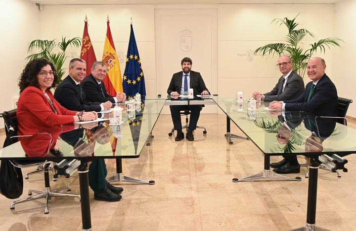 El presidente de la Región de Murcia, Fernando López Miras, mantuvo hoy un encuentro con los presidentes de los Consejos Escolares de la Región de Murcia, José Francisco Parra; Andalucía, Manuel Pérez; Comunidad de Madrid, María Pilar Velasco; y Comunidad Valenciana, Juan Salvador Oliver, que participan en Murcia en un encuentro de trabajo sobre convivencia y salud mental.