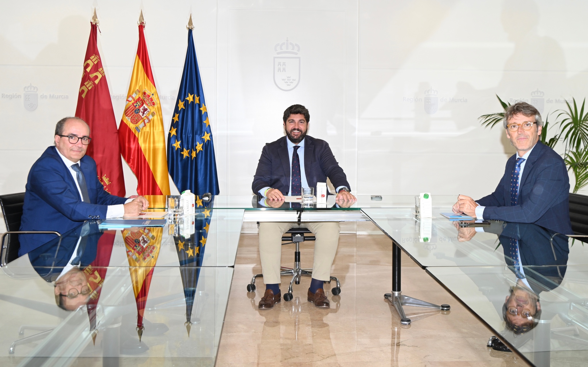 El presidente de la Región de Murcia, Fernando López Miras, se reúne con Jorge Jiménez Molina, director general de Viewnext, empresa perteneciente al grupo IBM. En la reunión estuvo acompañado por el consejero Luis Alberto Marín