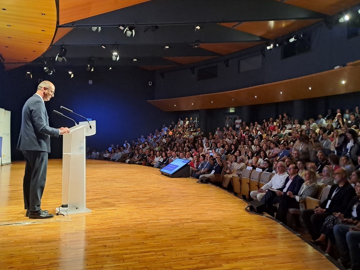 El consejero de Educación y Formación Profesional, Víctor Marín, inauguró la jornada y destacó que “desde el Gobierno regional llevamos tiempo trabajando para ordenar y racionalizar el uso de los dispositivos digitales de la mano de expertos, siempre basándonos en la evidencia científica y en la premisa de enseñar a usar”.
