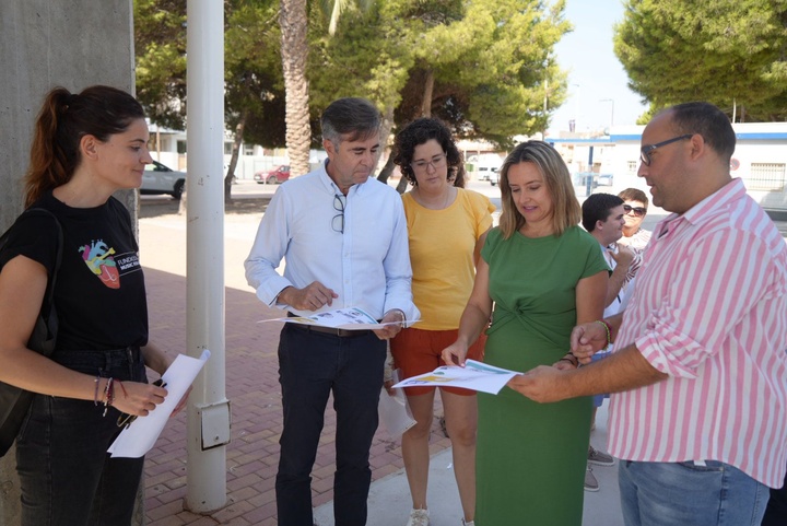 En la visita al recinto, la consejera estuvo acompañada por el alcalde de San Pedro del Pinatar, Pedro Javier Sánchez, por la representante de la entidad encargada de adaptar el festival a personas con discapacidad y movilidad reducida, Fundación ‘Music for All’, Raquel García, y también por representantes de las entidades de discapacidad Aidemar y Afemar.