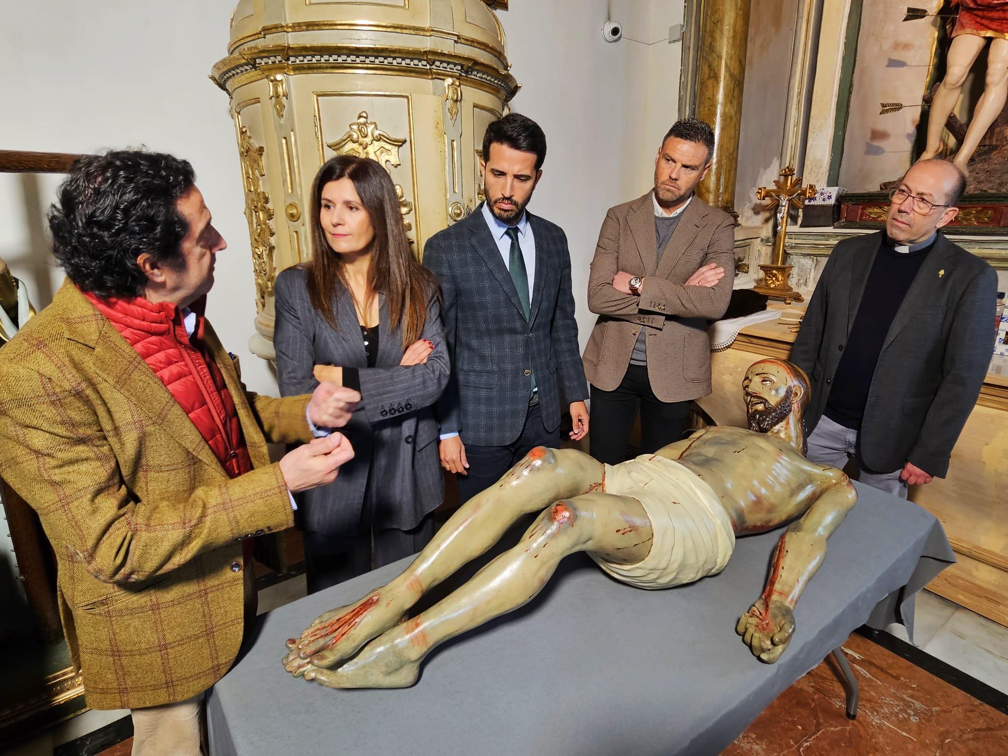 El director general de Patrimonio Cultural, Patricio Sánchez, y el alcalde de Caravaca, José Francisco García, durante el acto de entrega de la talla restaurada