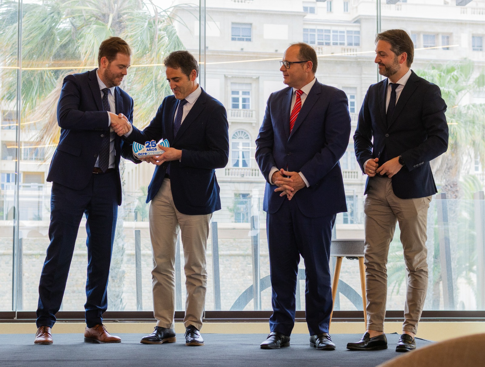El director general entregó al presidente del Consejo General de Colegios Oficiales de Graduados e Ingenieros Técnicos Industriales de España, José Antonio Galdón, el Premio Acre Colaborador a los Colegios Profesionales. La jornada, que coincide con el XXV aniversario de la firma organizadora, analizó varios de los retos en materia de contaminación acústica, desde su gestión de eventos y fiestas populares a la posible revisión de la normativa, especialmente el Decreto 48/1998.
