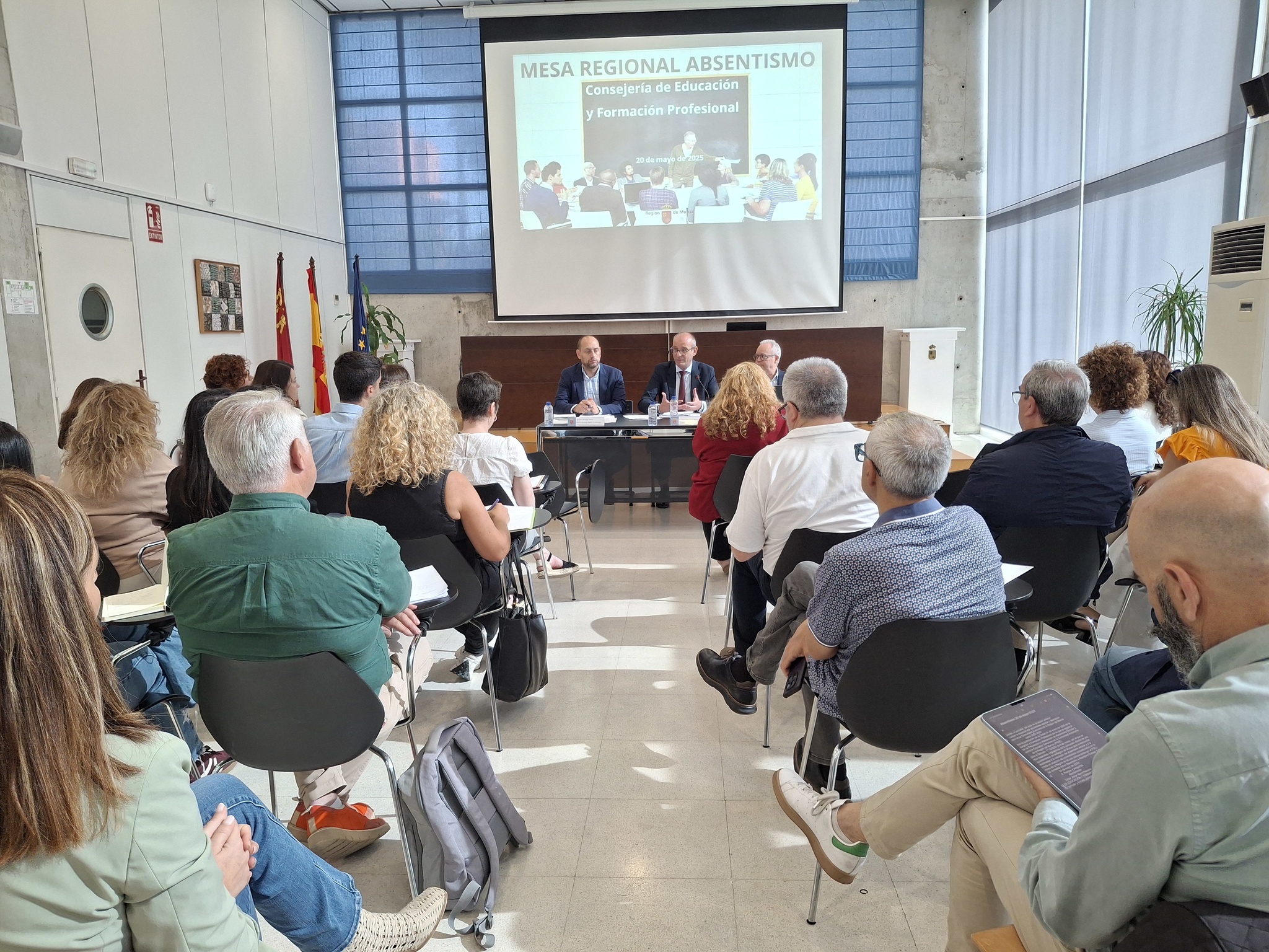 El consejero de Educación y Formación Profesional, Víctor Marín, preside la Mesa Regional de Absentismo y Abandono Escolar.