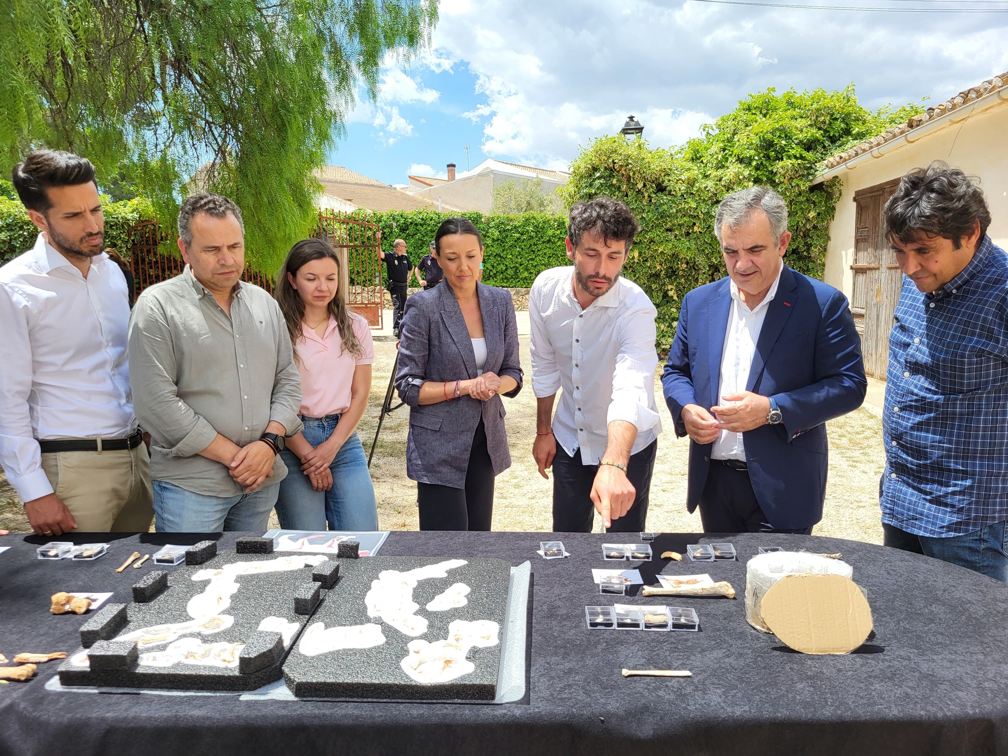 El consejero de Medio Ambiente, Universidades, Investigación y Mar Menor, Juan María Vázquez, y la consejera de Turismo, Cultura, Juventud y Deportes, Carmen Conesa, junto con el coordinador del proyecto 'Life LynxConnect', Francisco Javier Salcedo, y el alcalde de Abanilla, José Antonio Blasco, visitan el yacimiento de Quibas con motivo del cierre de la campaña arqueológica