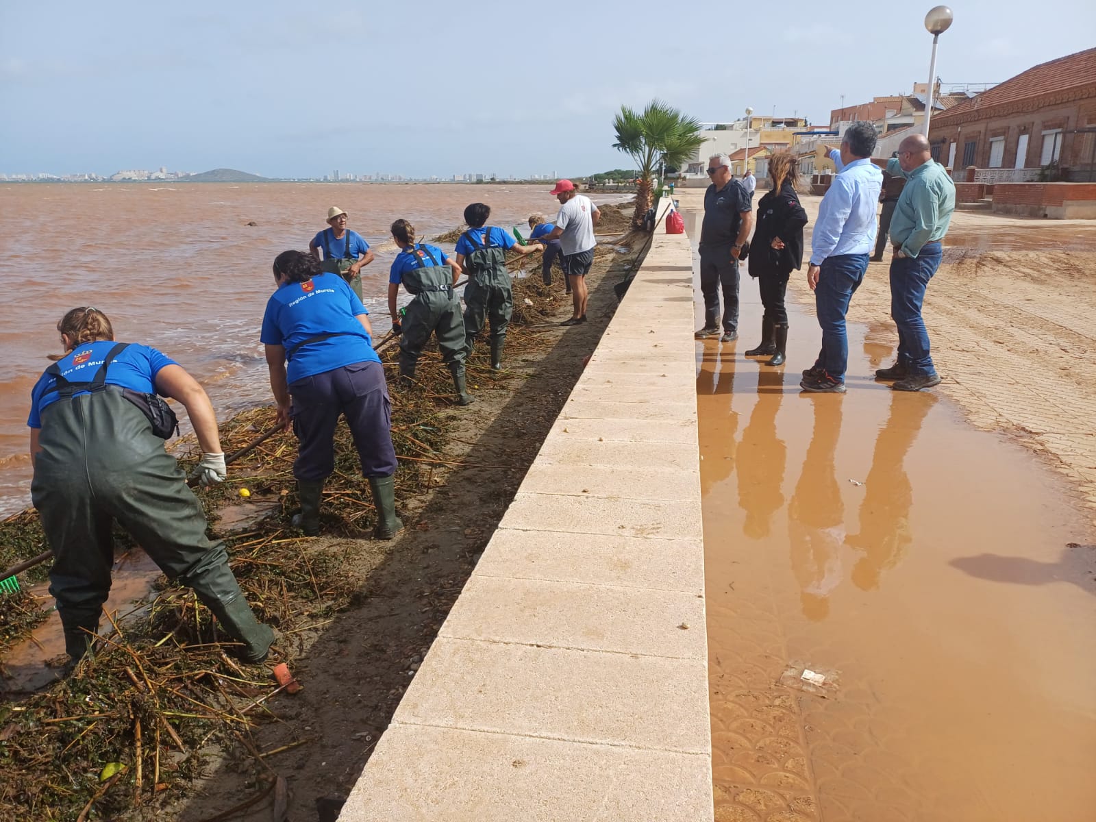 El consejero de Medio Ambiente, Universidades, Investigación y Mar Menor, Juan María Vázquez, visitó esta mañana a las brigadas de limpieza de biomasa en la playa de Los Nietos.