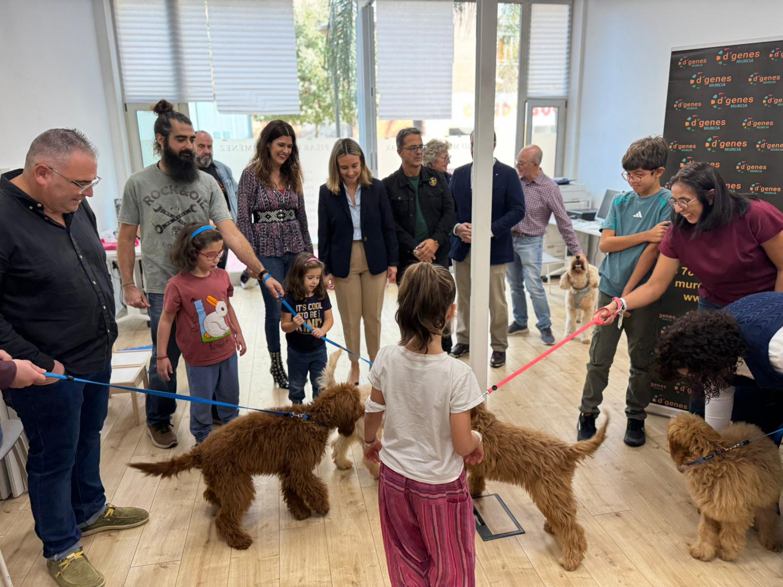 La consejera de Política Social, Familias e Igualdad, Conchita Ruiz, participó junto con el presidente de la Asociación de Enfermedades Raras D´Genes, Juan Carrión, en la entrega de cinco perros de terapia a familias que conviven con enfermedades raras, sin diagnóstico o discapacidad. El acto, impulsado por D´Genes, en colaboración con Dogking, que ha donado estos cachorros de Australian Cobberbog, tuvo lugar en el Centro Multidisciplinar ‘Pilar Bernal Giménez’ de Murcia.