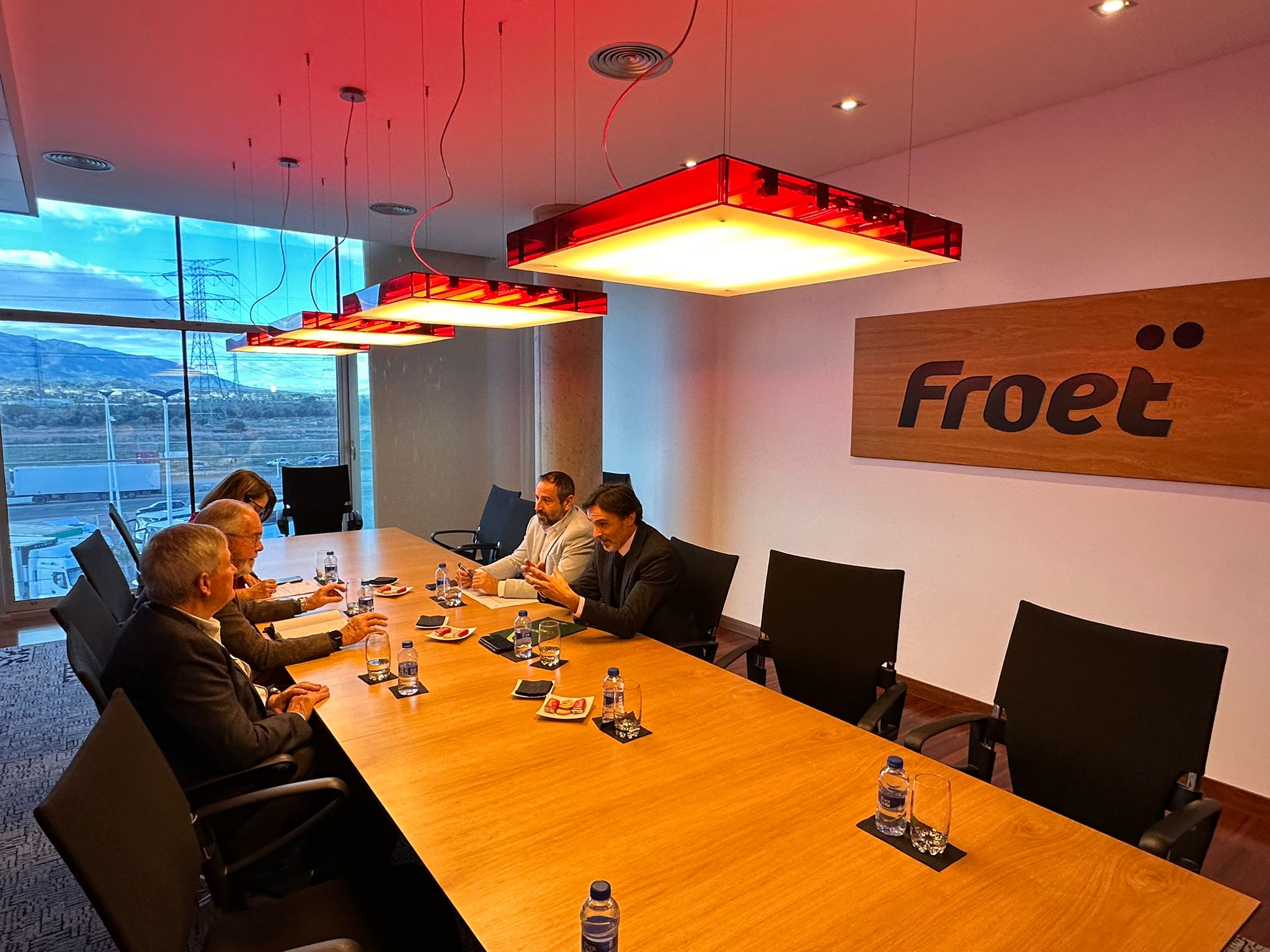 El consejero de Fomento e Infraestructuras, Jorge García Montoro, acompañado del presidente de FROET, Pedro Díaz, durante un encuentro para hablar de las principales novedades del transporte interurbano de la Región de Murcia