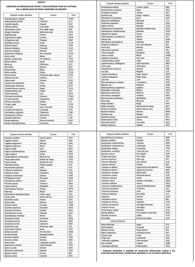 Se prohíbe la captura de crustáceos, moluscos e invertebrados marinos, a excepción de los cefalópodos contemplados en el Anexo I del R. D. 347/2011de 11 de marzo, por el que se regula la pesca marítima de recreo en aguas exteriores (BOE nº 81, de 05/04/2011)