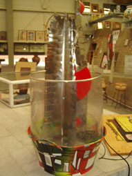 Medidas: 100 cm. x 50 cm. x 50 cm. Técnica: soldadura, ensamblaje y policromado.Materiales: acero cortem, acero inoxidable, bronce, aluminio, metacrilato.