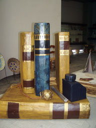 Medidas: 100 cm. x 0,60 cm. x 115 cm.Técnicas: cartón piedra.Materiales: cartón, engrudo, madera, hierro, y pintura.