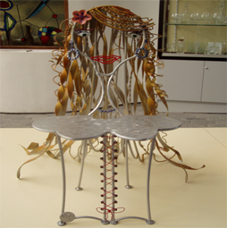 Autora: Adela Ruiz MarínMedidas: 100 cm. x 80 cm.Técnicas: soldadura y torsión de hierro a mano.Materiales: varilla de diversos tamaños y reciclados: hierros, troquelados y acero inoxidable.