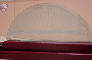 Autor: José Reina García.Medidas: 30 cm.Técnica: tallado y grabado con ruedas diamantadas en torno Materiales: cristal y madera con iluminación