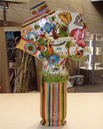 Autor: Martín Lario GarcíaMedidas: 96 cm. x 55 cm.Técnica: tradicional en torno alfarero con incrustaciones en barro cocido a 1000ºMateriales: arcilla, engobes, colorantes y esmaltes cerámicos.