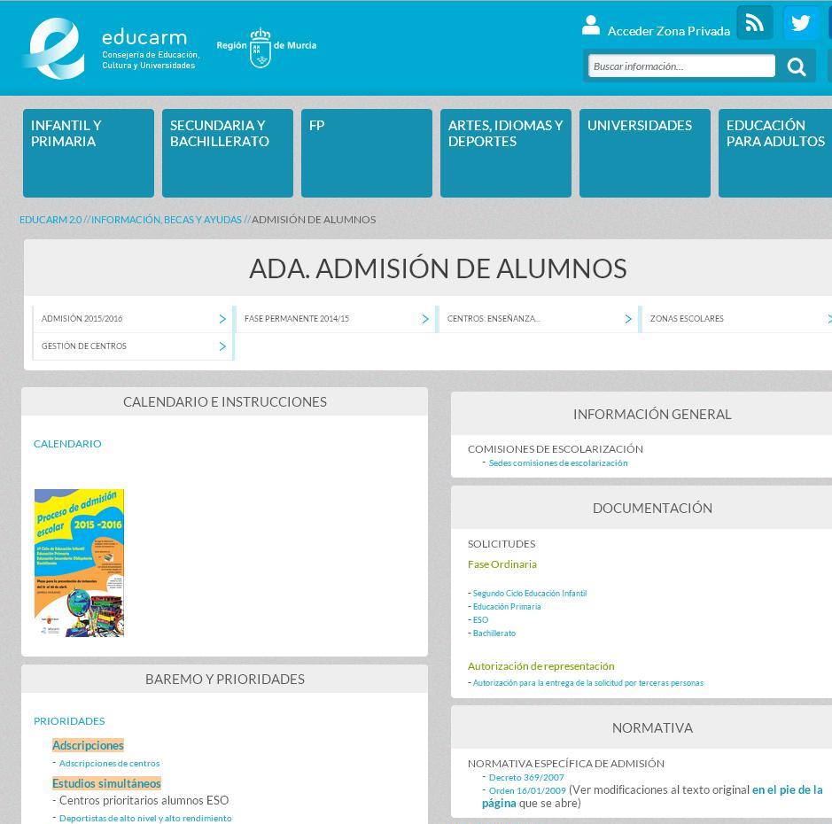 Desde el portal de Educarm se puede acceder al nuevo modelo de solicitud de admisión para las enseñanzas de Educación Infantil, Primaria, Secundaria y Bachillerato.