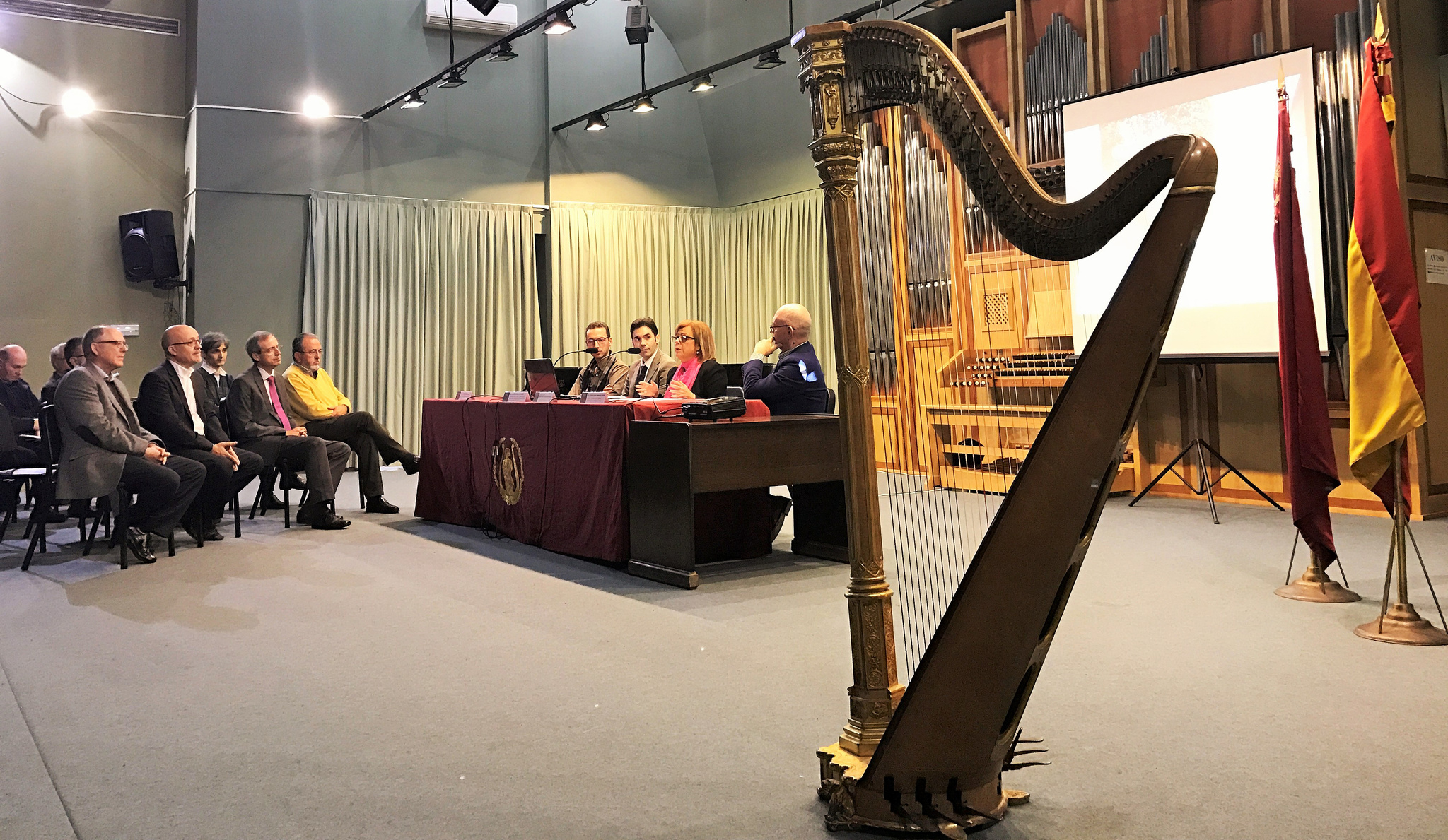 Coincidiendo con la celebración de Santa Cecilia, la consejera de Educación y Universidades, María Isabel Sánchez-Mora, acompañó al autor y coordinador del proyecto, José Ballester, en la presentación de la publicación ‘El Patrimonio Audiovisual de los conservatorios de música de Murcia’.